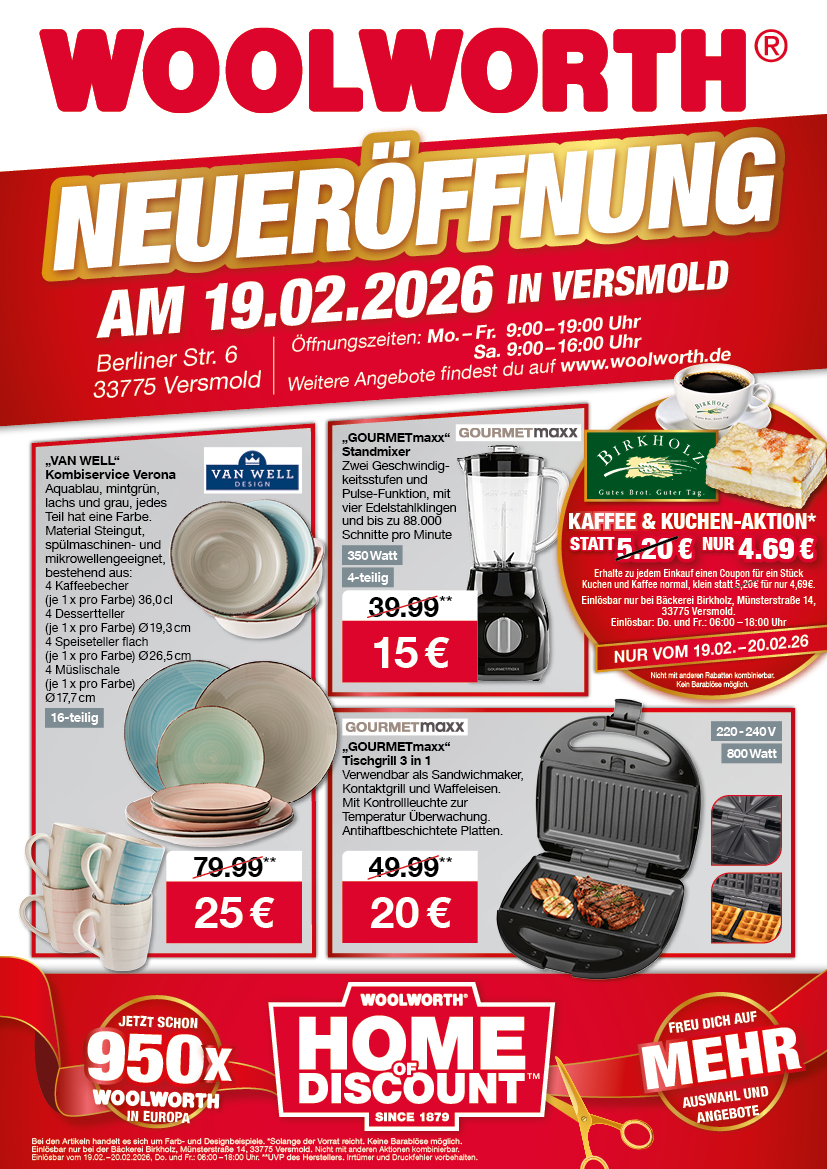 Zum StellenangebotStores in der Nähe von Woolworth – Versmold