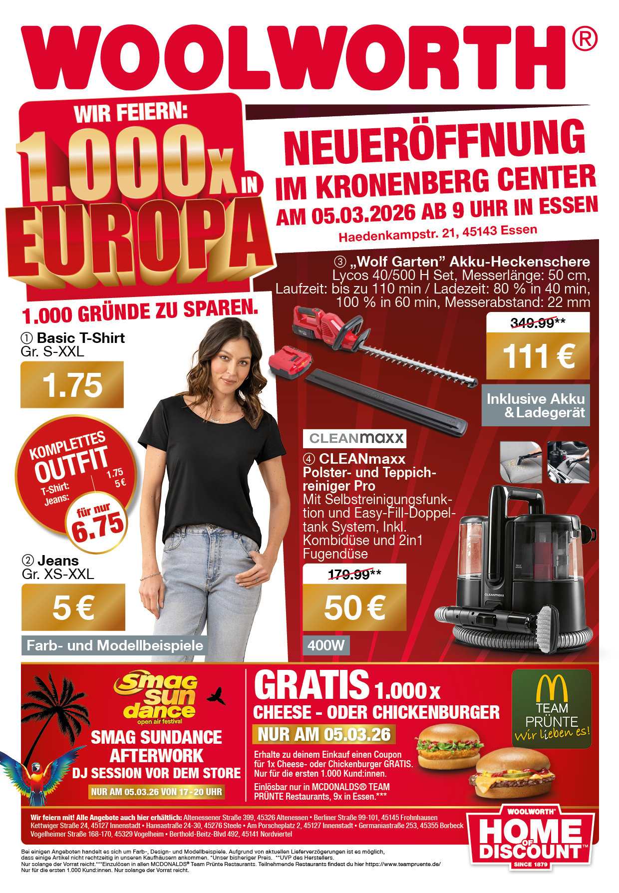 Jetzt wird gefeiert! Wir eröffnen den 1000. Store! Besuche unseren neuen Store in Essen. Sichere dir unsere Neueröffnungsangebote und erhalte attraktive Markenprodukte zu unglaublich günstigen Preisen! Es warten tolle Aktionen auf dich!