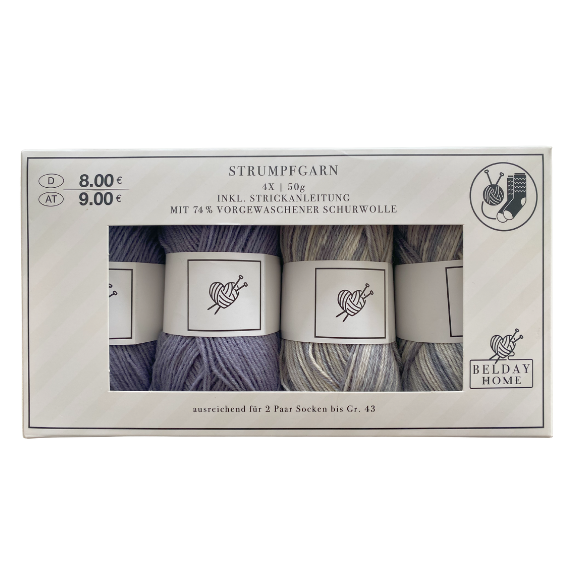 - Material: ca. 100g Sockengarn, 1 Set Nadelspiel (doppelt gespitzte Nadeln) der Stärke 2–3