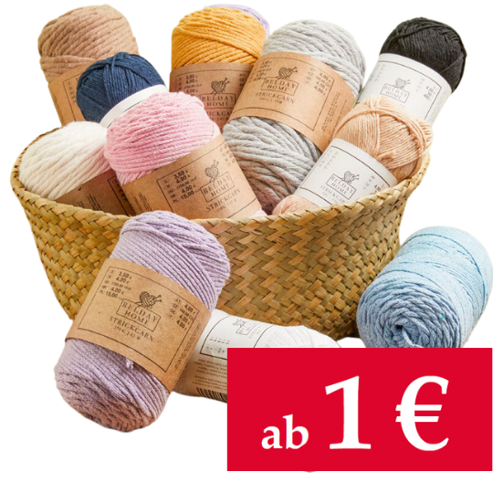 Wenn du größere Stücke mit mehrfarbigem Garn strickst, empfehlen wir, bei jeder Reihe zwischen 2–3 Knäueln zu wechseln, um die Bildung von Farbmustern zu vermeiden.